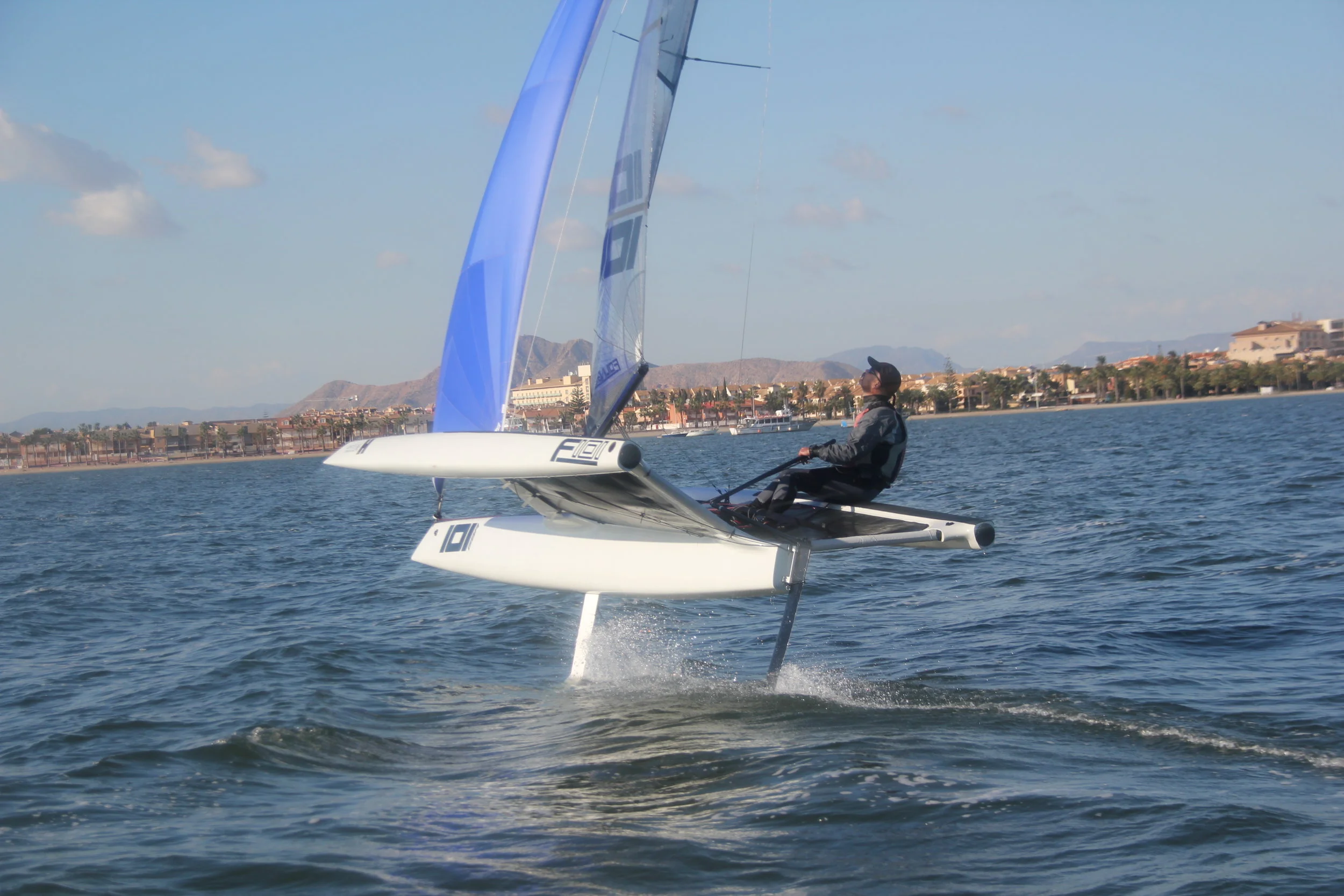 We have been trying to get out sailing the F101 as much as we can, and after a few sessions in Brightlingsea, we moved the prototype down to the Pro-Vela base in Mar Menor, Spain so that we could enjoy warmer weather and more reliable breeze. We have now been down in Spain for 2 sessions, one with the principle builders, designer and suppliers, and a second session where we were able to get 2 full days sailing in and move forward plenty of our development plans. We will be back in Spain in early January for another round.